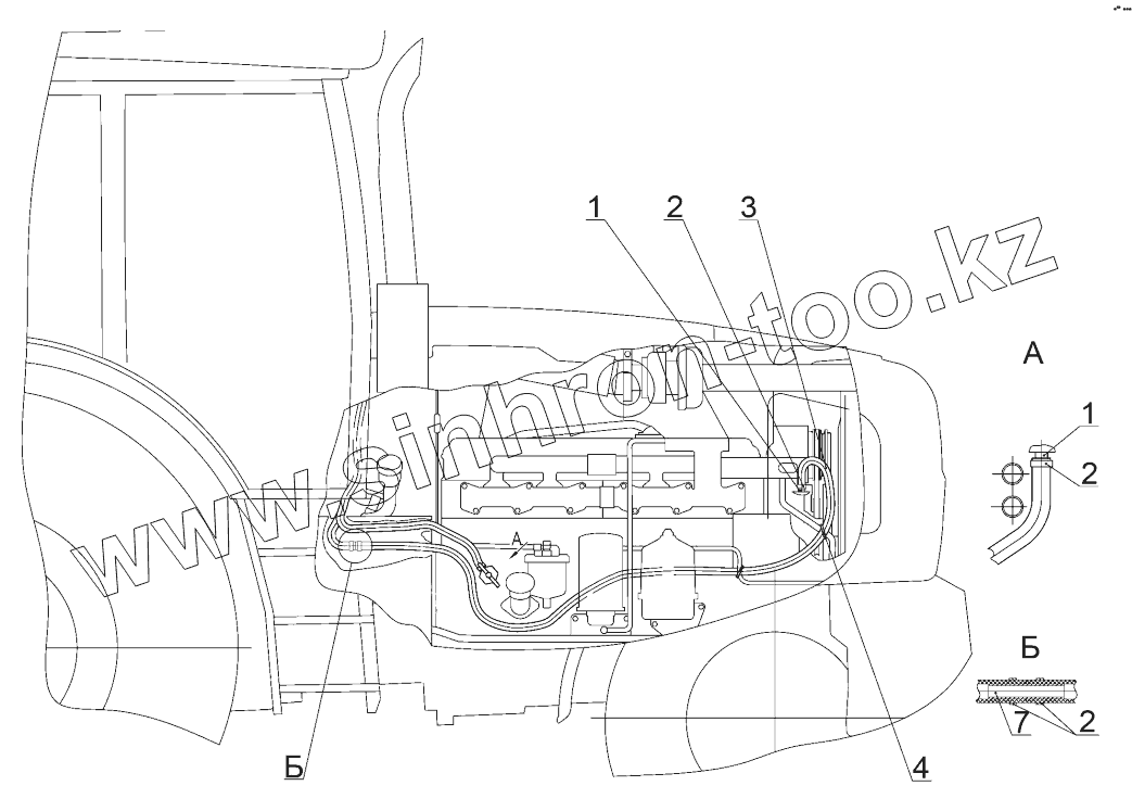 Каталог запасных частей к технике: МТЗ-1523.6. Установка шлангов отопителя