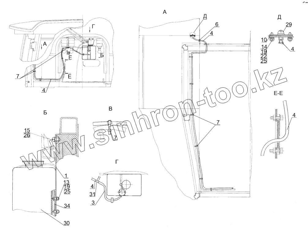 Каталог запасных частей к технике: МТЗ-1523.6. Установка стеклоомывателя
