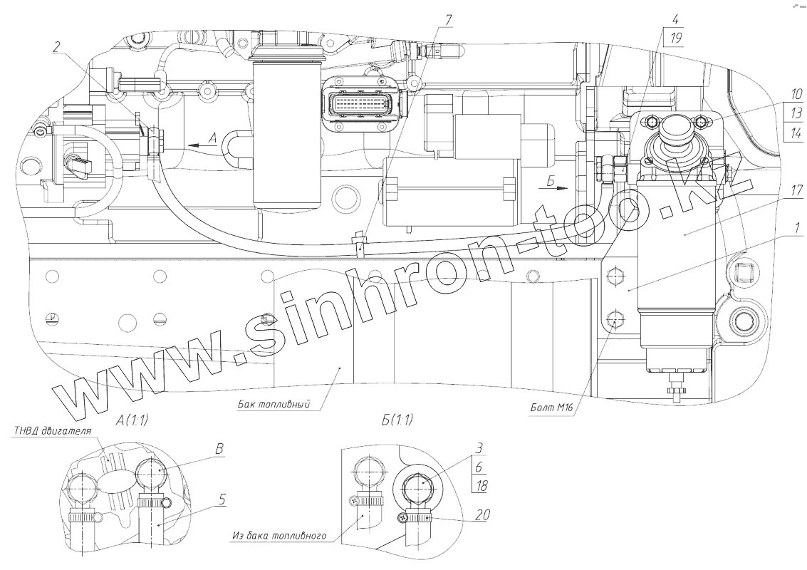Каталог запасных частей к технике: МТЗ-1523.6. Установка топливного фильтра