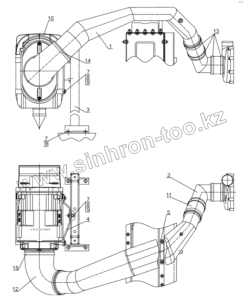 Каталог запасных частей к технике: МТЗ-1523.6. Установка воздухоочистителя