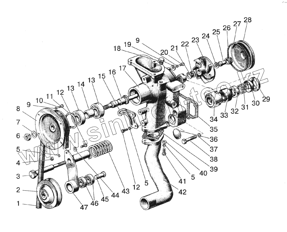 Каталог запасных частей к технике: МТЗ-1523 (2008). Насос водяной и натяжитель