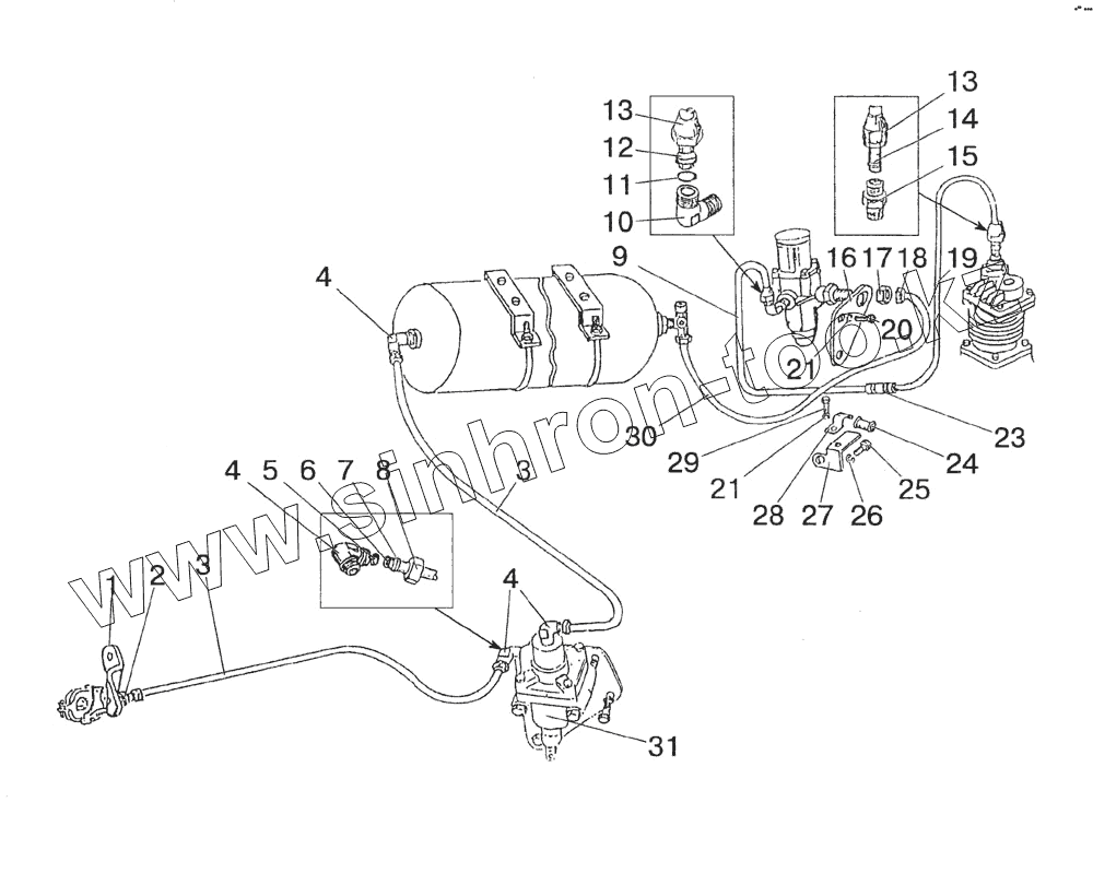 Каталог запасных частей к технике: МТЗ-1523 (2008). Трубопроводы и арматура пневмопривода тормозов прицепа