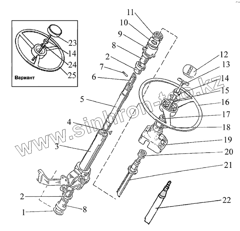 Каталог запасных частей к технике: МТЗ-2022. Колонка рулевая