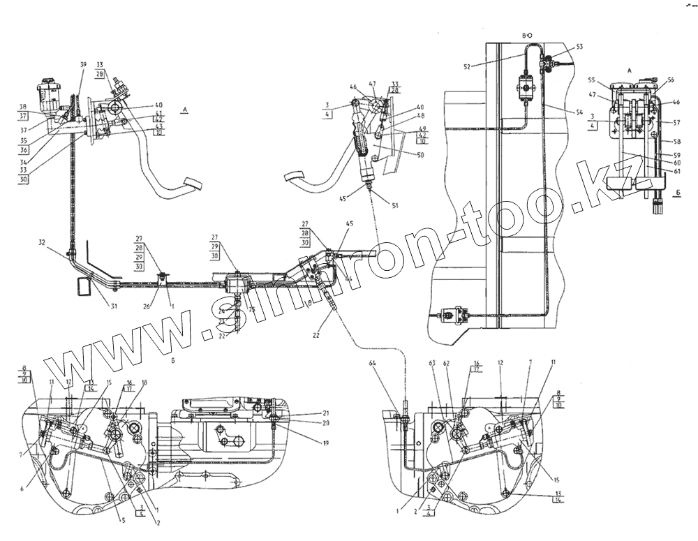 Каталог запасных частей к технике: МТЗ-2022. Управление тормозами на реверсе