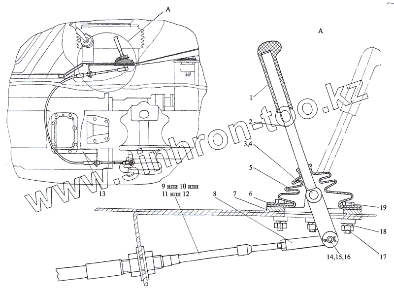 Каталог запасных частей к технике: МТЗ-2103. Привод переключения заднего ВОМ