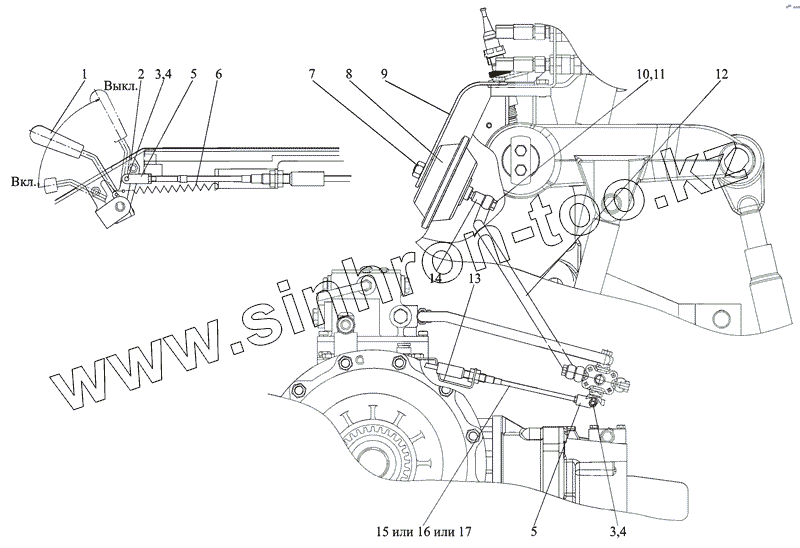 Каталог запасных частей к технике: МТЗ-2103. Управление распределителем заднего ВОМ