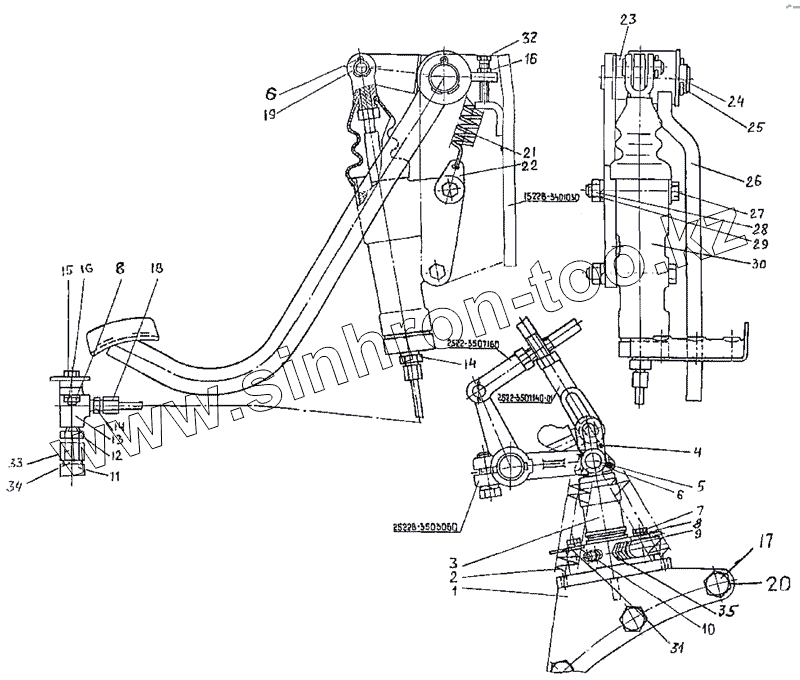 Каталог запасных частей к технике: МТЗ-2522. Управление тормозами на реверсе