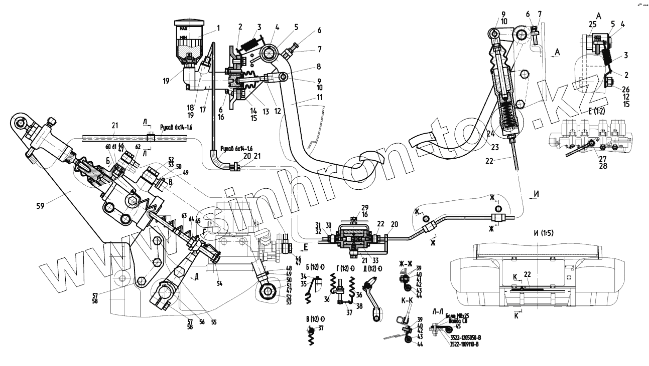 Каталог запасных частей к технике: МТЗ-3522. Управление сцеплением