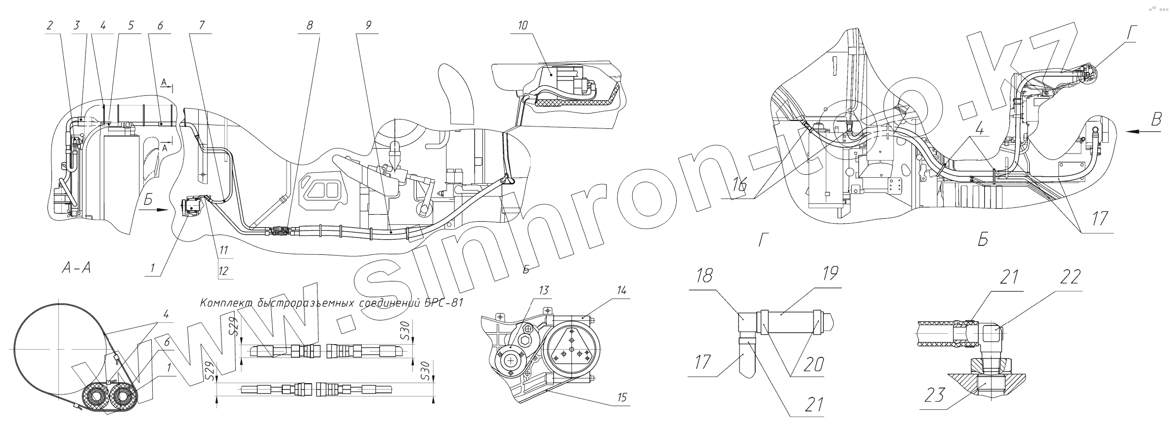 Каталог запасных частей к технике: МТЗ-3522. Установка компрессора и шлангов кондиционера
