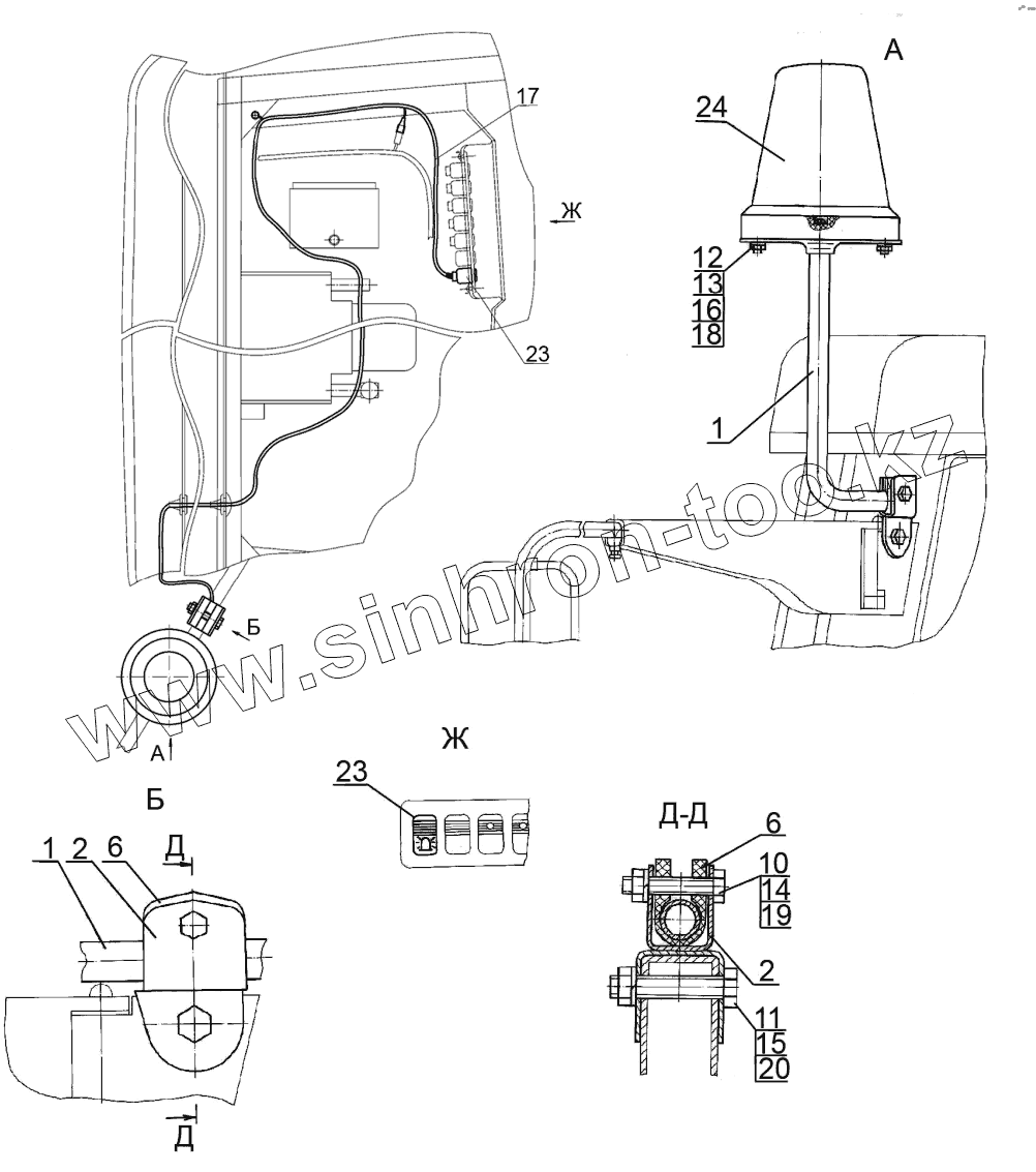 Каталог запасных частей к технике: МТЗ-3522. Установка маяка сигнального