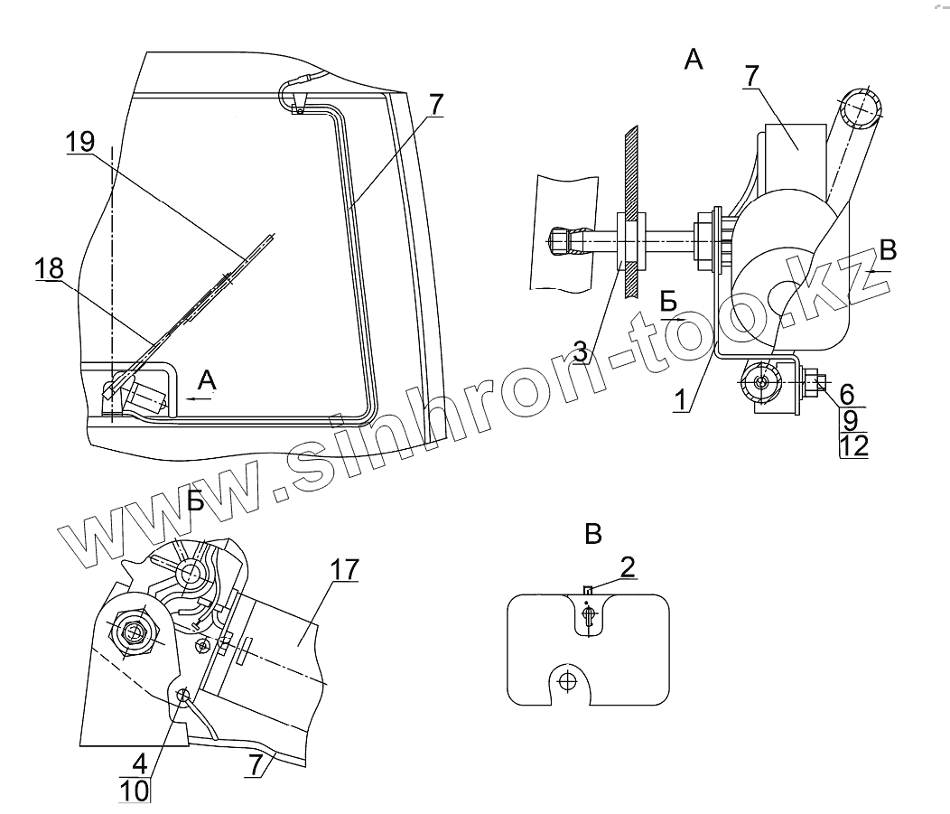 Каталог запасных частей к технике: МТЗ-3522. Установка стеклоочистителя заднего