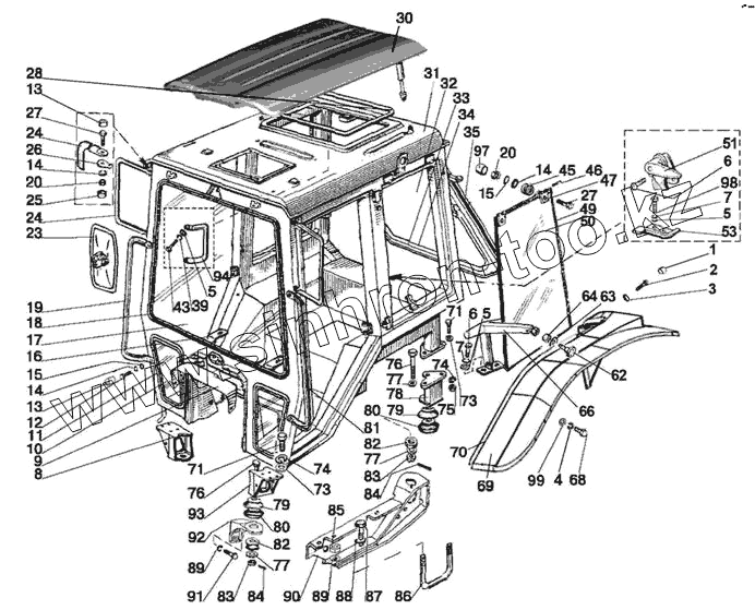 Каталог запасных частей к технике: МТЗ-570. Кабина трактора. Крылья задние