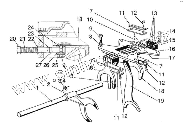 Каталог запасных частей к технике: МТЗ-570. Механизм управления механической КП, корпус вилок