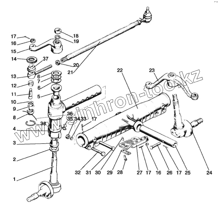 Каталог запасных частей к технике: МТЗ-570. Ось передняя и тяга рулевая