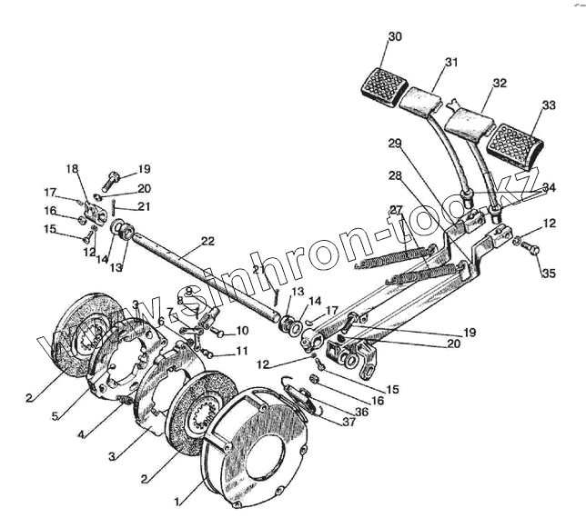 Каталог запасных частей к технике: МТЗ-570. Тормоза. Управление тормозами (сухого трения)