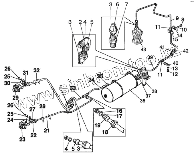 Каталог запасных частей к технике: МТЗ-570. Трубопроводы и арматура двухпроводного пневмопривода тормозов прицепа