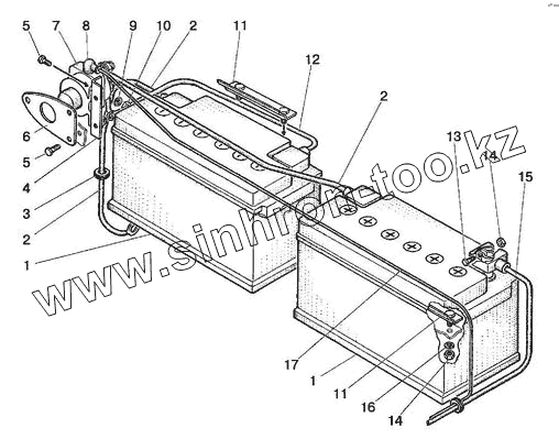 Установка батарей аккумуляторных (система запуска 24В)