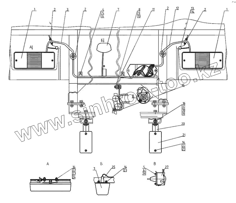 Каталог запасных частей к технике: МТЗ-570. Установка фонарей задних