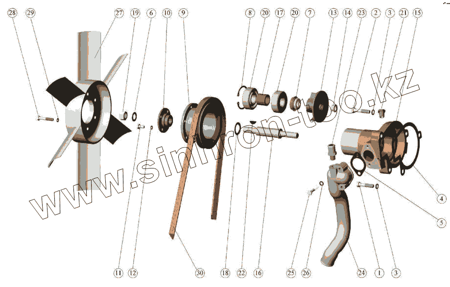 Каталог запасных частей к технике: МТЗ-570. Установка водяного насоса, установка вентилятора