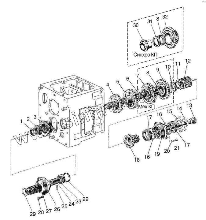 Каталог запасных частей к технике: МТЗ-570. Вал промежуточный. Вал внутренний