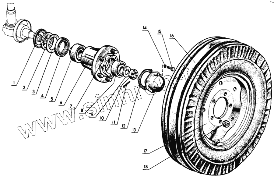 Каталог запасных частей к технике: МТЗ-80. Колеса передние направляющие. Ступицы передних колес