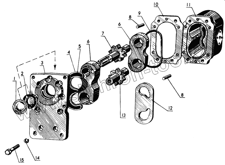 Каталог запасных частей к технике: МТЗ-80. Насос шестеренный НШ10