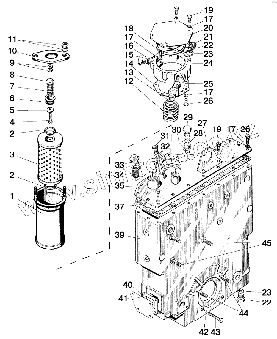 Каталог запасных частей к технике: МТЗ-80.1. Корпус гидроагрегатов и фильтр. Вариант