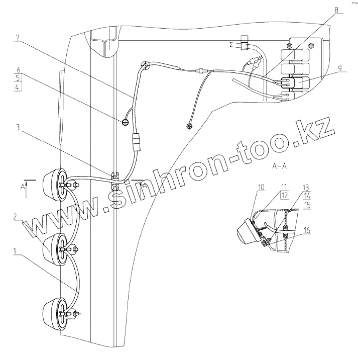 Каталог запасных частей к технике: МТЗ-80.1. Установка фонарей автопоезда
