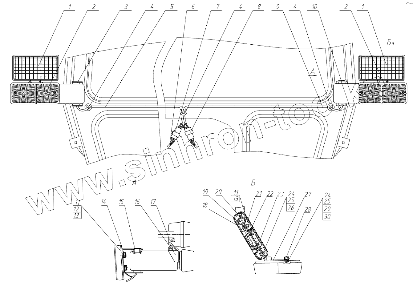 Каталог запасных частей к технике: МТЗ-80.1. Установка фонарей передних