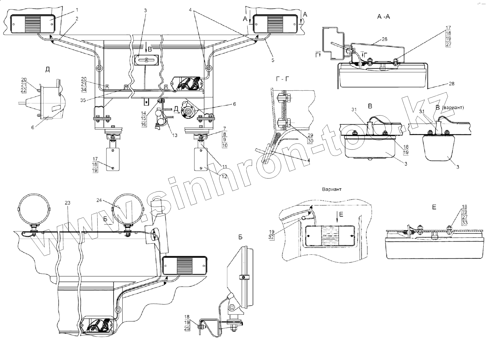 Каталог запасных частей к технике: МТЗ-80.1. Установка фонарей задних
