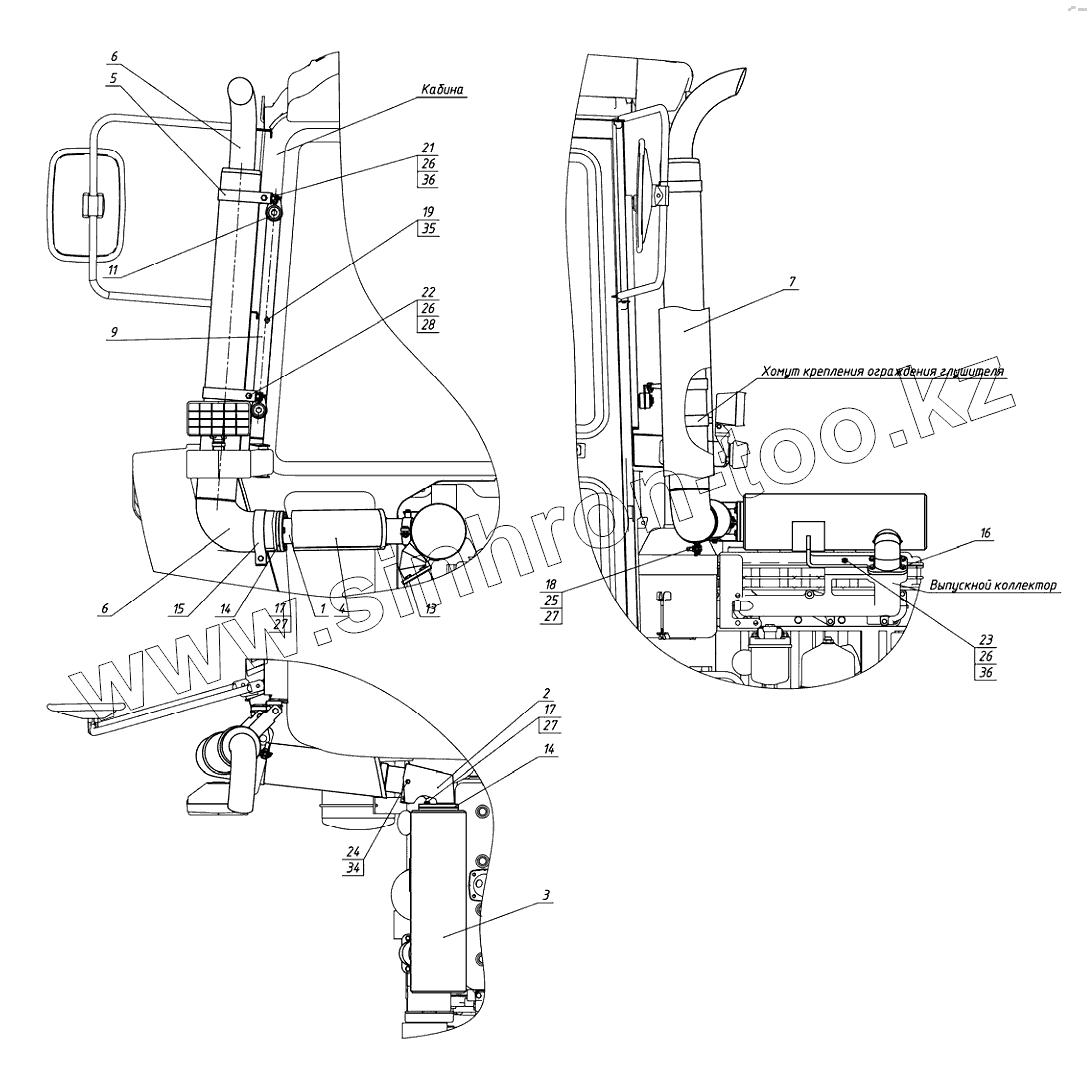 Каталог запасных частей к технике: МТЗ-80.1. Установка глушителя 826-1205005-Б
