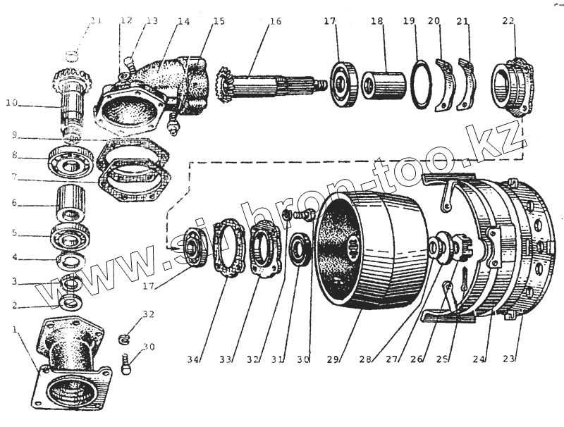 Вал со стаканом, подшипником и втулкой в сборе
