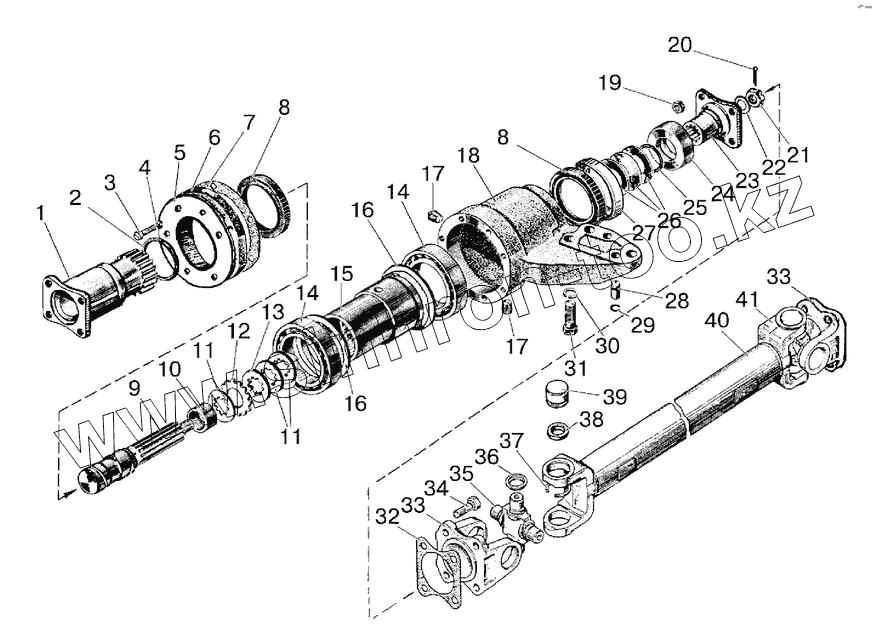 Каталог запасных частей к технике: МТЗ-821/921. Карданный вал, промежуточная опора карданного вала