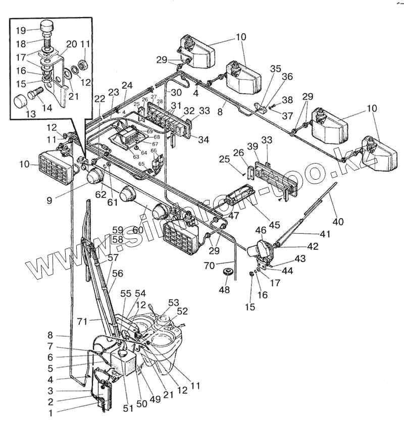 Каталог запасных частей к технике: МТЗ-822. Электрооборудование по кабине. Установка фар рабочих