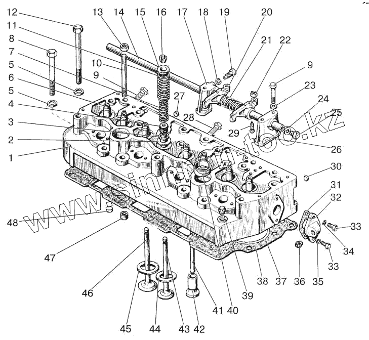 Каталог запасных частей к технике: МТЗ-822. Головка цилиндров. Клапаны и толкатели клапанов