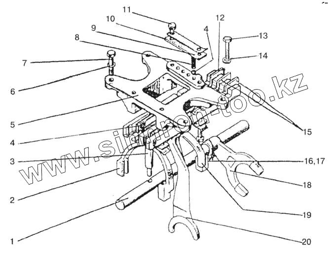 Каталог запасных частей к технике: МТЗ-822. Механизм управления коробкой передач. Корпус вилок