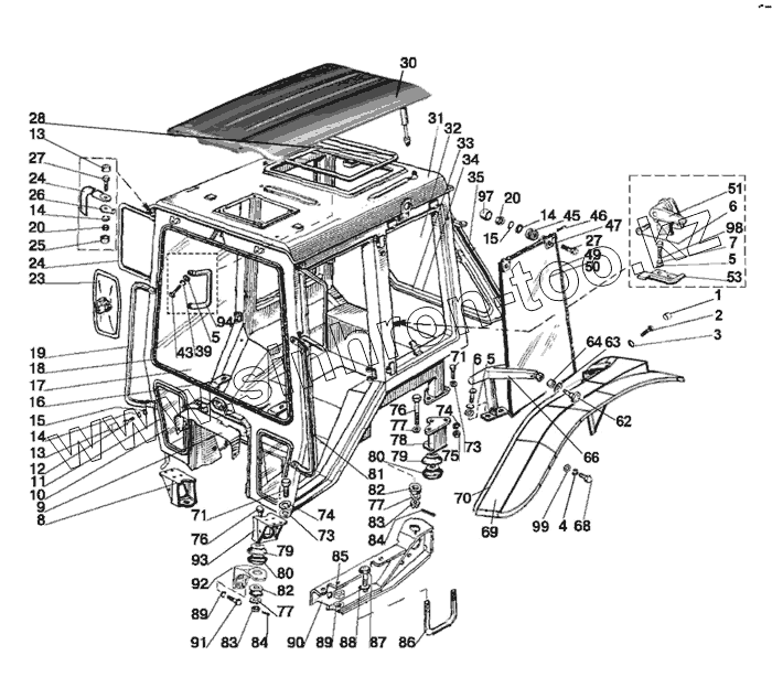 Каталог запасных частей к технике: МТЗ-826. Кабина трактора. Крылья задние