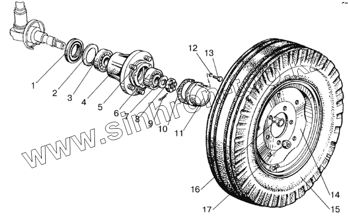 Каталог запасных частей к технике: МТЗ-826. Колеса передние направляющие, ступицы передних колес