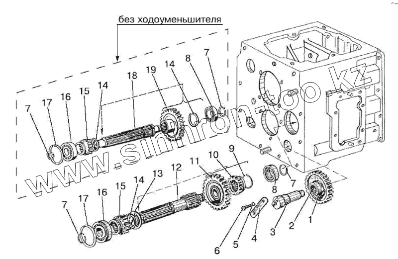 Каталог запасных частей к технике: МТЗ-826. Вал 1-ой передачи и передачи заднего хода