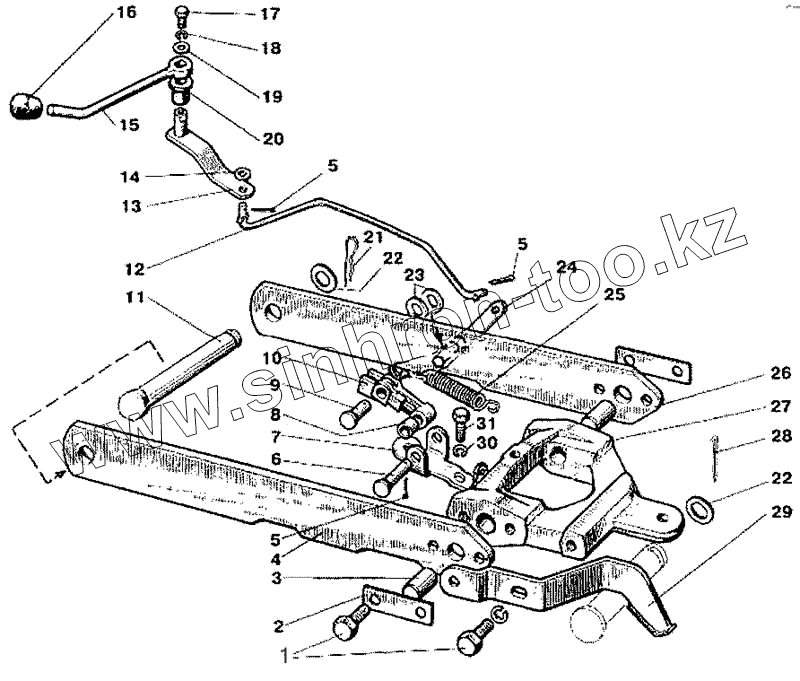Каталог запасных частей к технике: МТЗ-900. Механизм фиксации навески
