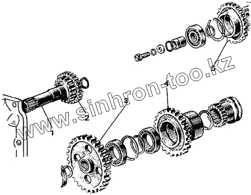 Вал I и передачи заднего хода. Опоры промежуточного и внутреннего валов