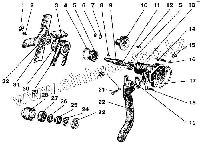 Каталог запасных частей к технике: МТЗ-900. Водяной насос. Вентилятор