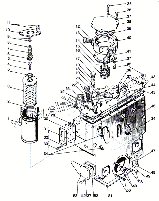 Каталог запасных частей к технике: МТЗ-900/920/950/952. Корпус гидросистемы и фильтр