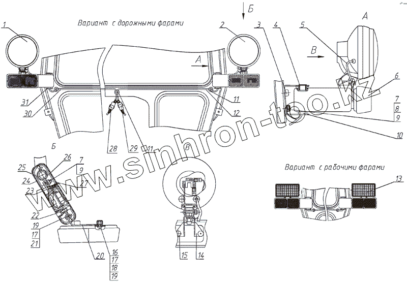 Каталог запасных частей к технике: МТЗ-900/920/950/952. Установка фонарей передних