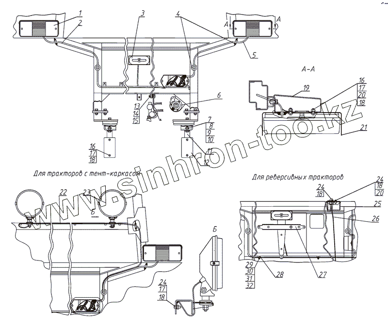 Каталог запасных частей к технике: МТЗ-900/920/950/952. Установка фонарей задних