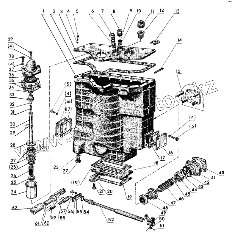 Каталог запасных частей к технике: МТЗ-90/92. Корпус гидроагрегатов, фильтр и привод гидронасоса