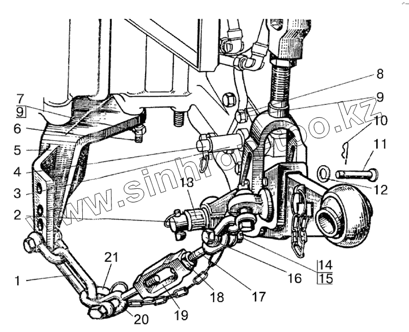 Каталог запасных частей к технике: МТЗ-90/92. Наружная блокировка нижних тяг