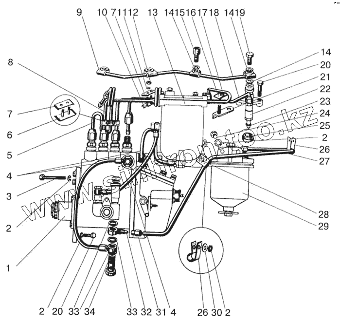 Каталог запасных частей к технике: МТЗ-922. Топливные трубопроводы. Установка топливной аппаратуры