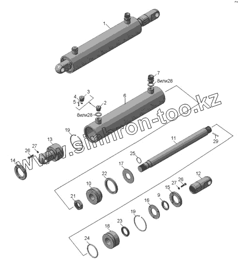 Каталог запасных частей к технике: Нефтекамский автозавод ГВД-1-Ф-6,0. Гидроцилиндр