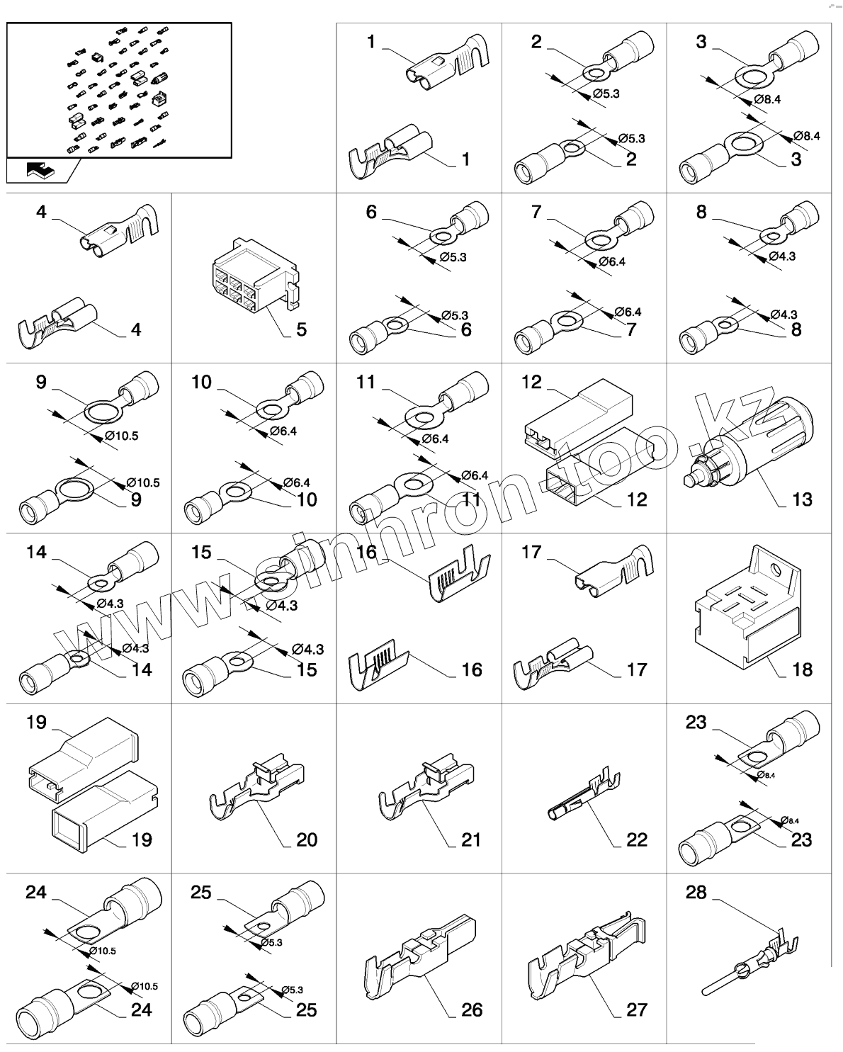 Каталог запасных частей к технике: New Holland CSX7080 (D660). CONNECTORS - FROM 80334588 TO 80445521